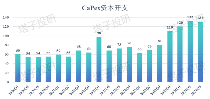 这两个风险点似乎被市场淡化,但依旧需要讨论。资本支出方面,谷歌三季度资本开支为130.6亿美元,环比基本不变,预期Q4资本开支也在这一水平,今年会进一步提高。同比增速依旧维持在40%左右的水平。