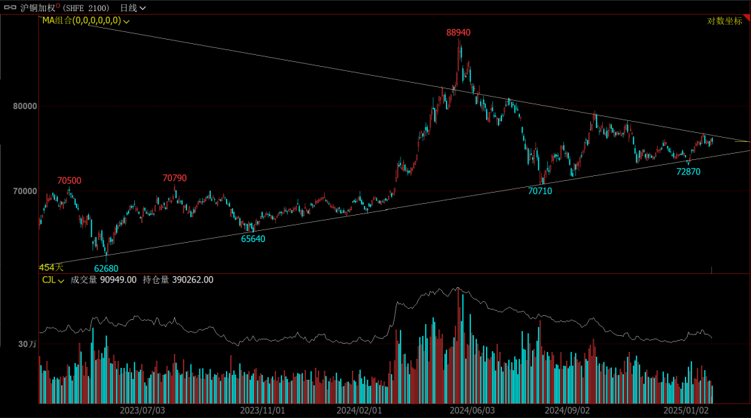 大家还记得甲辰年开始的时候的样子么,黄金和今天类似也是一个突破走势,铜价当时也是一个收敛三角形。甲辰年可谓有始有终。希望乙巳年也能和甲辰年一样精彩