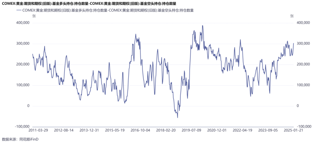 黄金的基金头寸在降息预期走弱时候继续维持在高位,确实有越来越多的投资者开始说黄金的逻辑是美债的发行以及不可持续。我觉得目前市场基本上没太多人觉得特朗普可以降低赤字,但我觉得核心还是赤字率。我的确觉得民主党浪费了很多钱,所以和之前一样,如果你要我在人民币金和美元金里面选,我觉得人民币金更好,因为中国确实需要货币和财政双宽松,但2025年美国有没有货币财政双宽松我就真不知道。