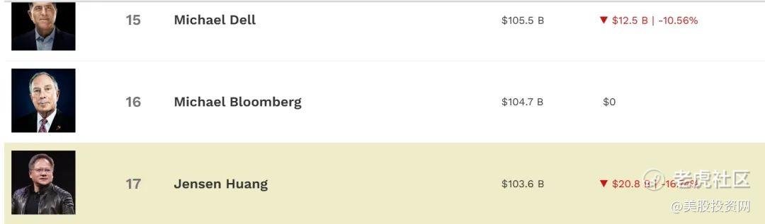 福布斯富豪榜显示,英伟达创始人黄仁勋的个人财富,也在周一蒸发超208亿美元。 $甲骨文(ORCL)$ 的拉里·埃里森身价蒸发276亿美元,迈克尔·戴尔损失125亿美元。谷歌的两位创始人拉里·佩奇和布林各损失超60亿美元。 $美国超微公司(AMD)$