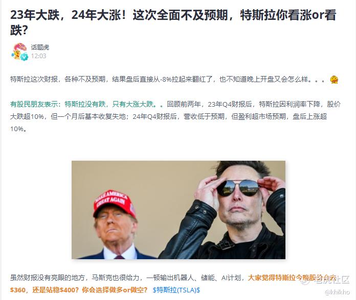 喝酒吃菜,刷手机,真惬意。突然看到话题虎关于特斯拉财报的帖子,哈哈,真乐乎,业绩不够,嘴巴来凑, $特斯拉(TSLA)$ 已经不是第一次干这事啦。谁让人家有个超级流量的CEO呢 [鬼脸]