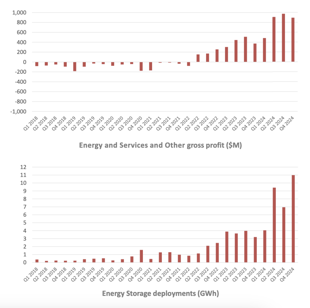 ● 储能与服务业务成亮点 :特斯拉的储能业务迎来了爆发式增长。