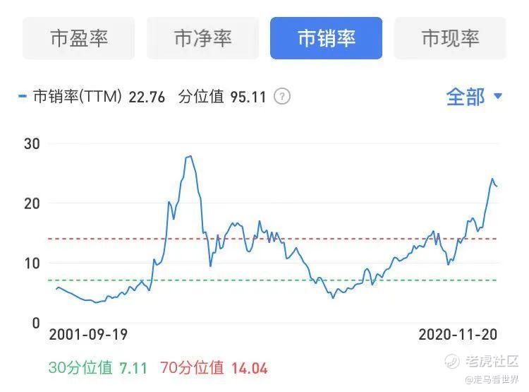 上面两张图,分别是茅台上市以来的历史市盈率和市销率数据。
