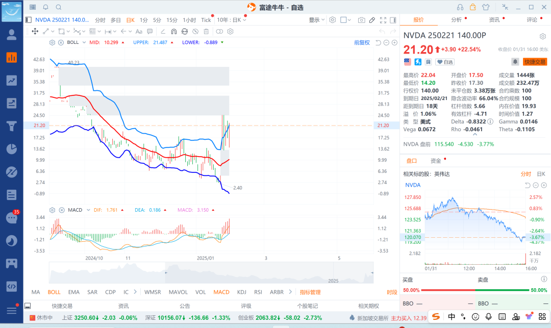 以上就是走跌的情况的安排,如果不跌了就等待反弹到周boll带中轨和上轨继续布局短中线即可,行权价稍微高一些即可。