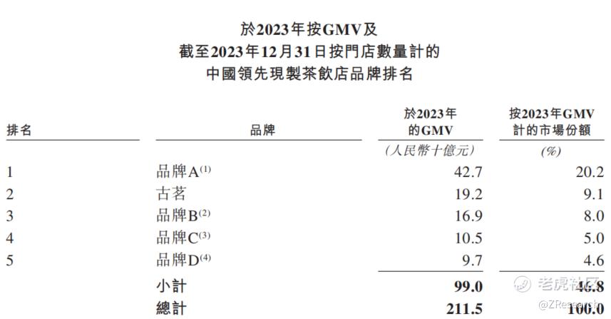 按2023年的商品销售额(GMV)及截至2023年12月31日的门店数量计,古茗在中国所有现制茶饮品牌中排名第二,第一是蜜雪冰城,第二是茶百道,茶百道已于2024年4月23日上市。