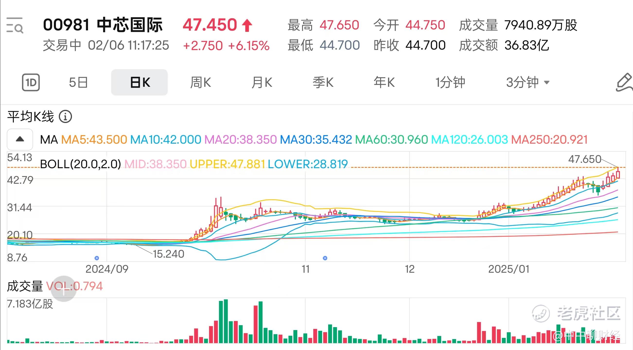 总结:中芯国际有望在这一波AI驱动的增长中受益,特别是在功率和模拟芯片领域。技术面上,即将进入超买区域,短期有回调风险,鉴于当前DeepSeek的热度,不看空,但也不建议追高买入。