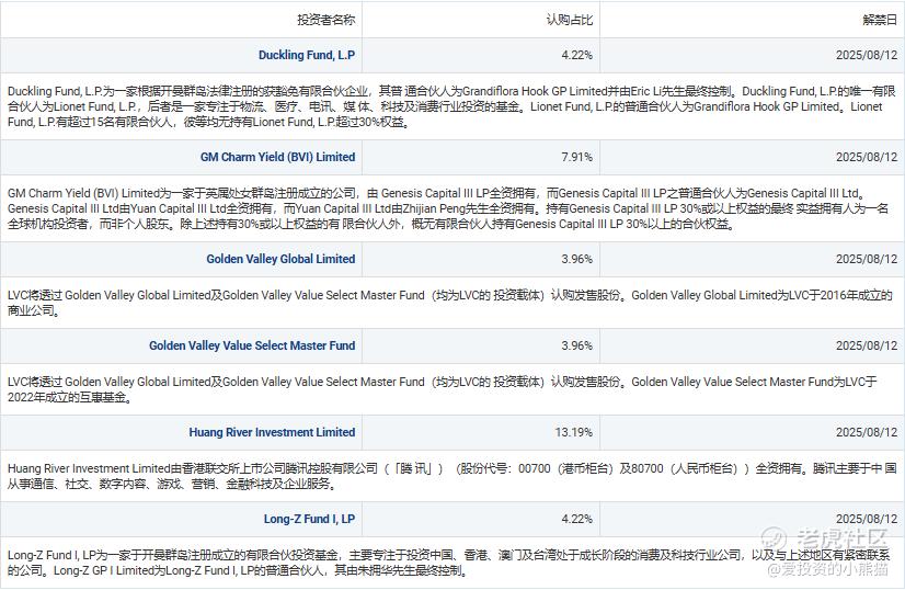 由腾讯控股全资拥有的Huang River Investment Limited,认购2500万美元(约1.95亿港元),约占全球发售股份的13.19%(按发行价中位数计,假设超额配股权未获行使);