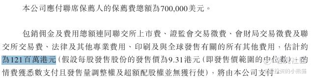 然后这个票招股书上按发售价范围的中位数9.31港元计算,公开的上市所有开支总额约为1.21亿港元,募资额约14.77亿港元,占比约8.19%,开支相比募资额算是比较少了。