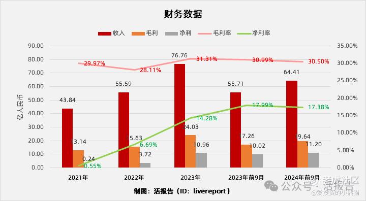 公司过去三年业绩呈现爆发增长,收入、毛利复合年增速超过30%,净利复合年增速高达576%;2024年前9月收入、毛利、净利增速有所放缓,但毛利率保持30%以上高位,净利率超17%。