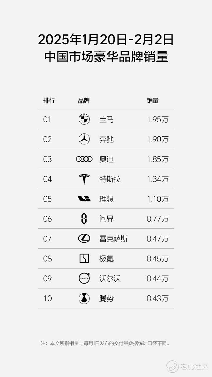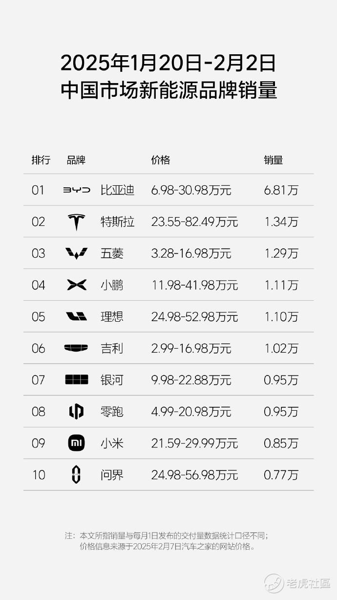 【新能源周榜】2025年第4,5周新势力车企销量(1.20-2.2)