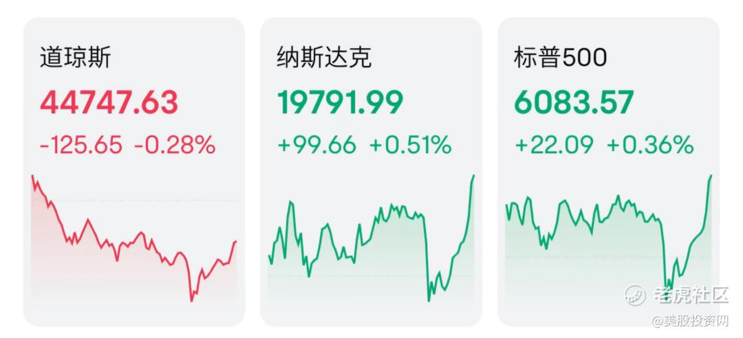 截至收盘,道指跌幅为0.28%;纳指涨幅为0.51%;标普500涨幅为0.36%。