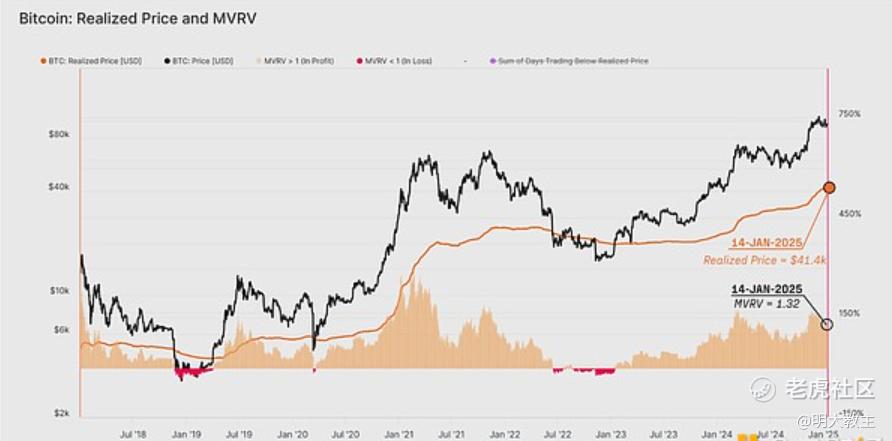 (至今年1月14日,“大饼”MVRV比率即未实现获利倍数约1.32,短期饼价见顶概率较低)