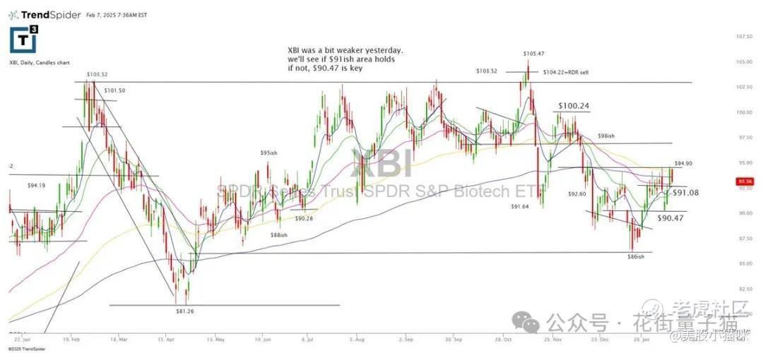 XBI昨日略显疲弱。我们将观察是否在91美元左右有支撑。如果不行,90.47美元是关键。
