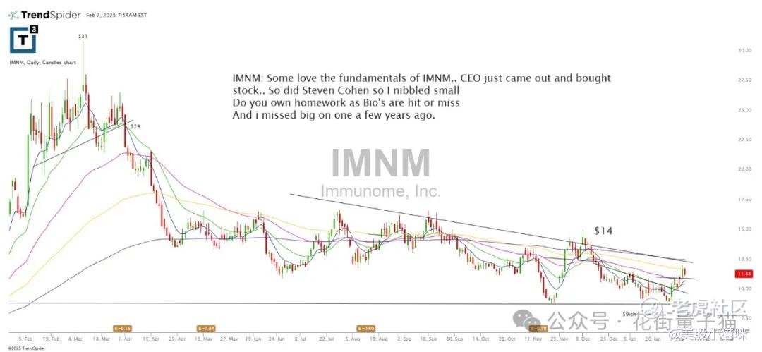 有些人喜欢IMNM的基本面。CEO刚刚出来买了股票,斯蒂芬·科恩也买了,我也小幅买入。你做功课了吗?生物股有时成功有时失败,我几年前错失了一个大的机会。