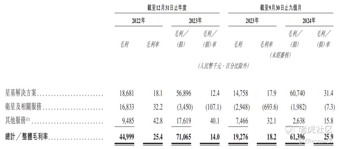 2022年、2023年及2024年前三季度,国星宇航的毛利率分别为25.4%、14.0%、25.9%,2023年毛利率大幅下滑主要是由于为了吸引客户并拓展市场占有率,若干卫星定价较低,而销售成本较高,使得卫星及相关服务录得107.1%的毛损率,从而拖累总体毛利率大幅下滑。