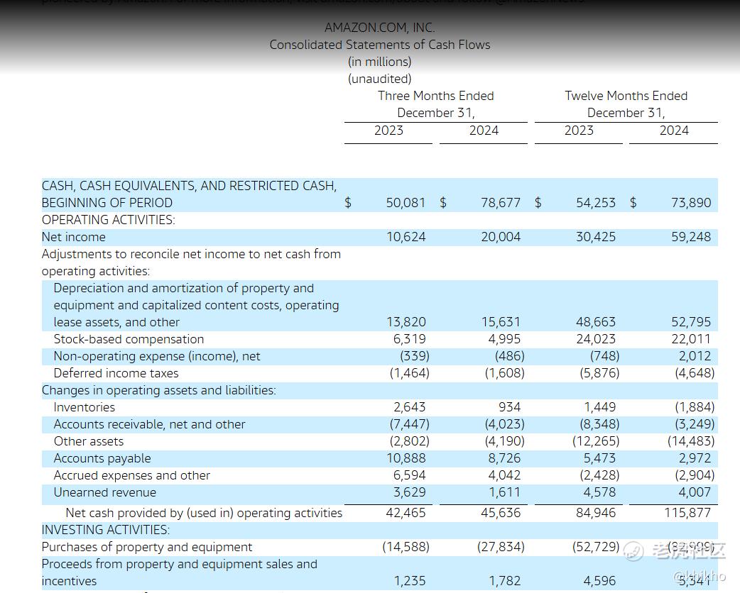 亚马逊于当地时间 2 月 6 日发布了 2024 年第四季度及全年财报,财报出炉有,股票有点小幅度的下跌,喜欢亚马逊的朋友们,赶紧找机会上车吧。