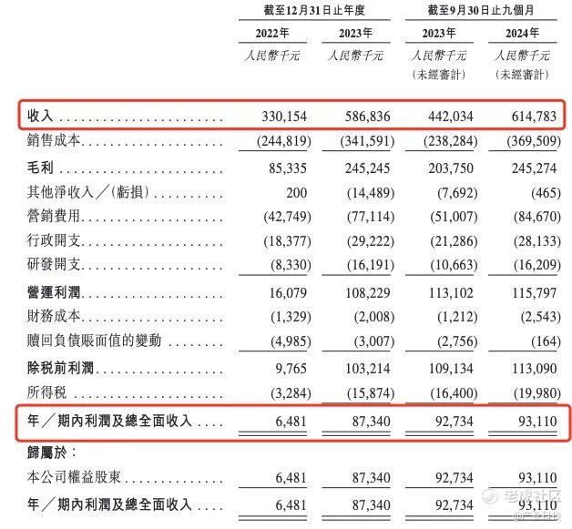 而且这摊生意还是正向盈利的。2022年净利润为648.1万元,经调整净利润为853.4万元 ;2023年净利润增长至8734万元,经调整净利润达到9457.8万元 ;2024年前三季度,净利润为9311万元,经调整净利润更是高达1亿元 。