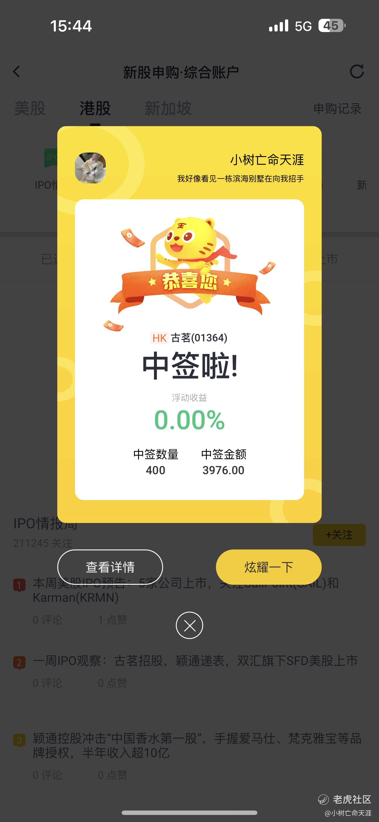 {"i18n":{"language":"zh_CN"},"data":{"magic":2,"id":402042176266616,"tweetId":"402042176266616","gmtCreate":1739173577116,"gmtModify":1739175547633,"author":{"id":3569791704636883,"idStr":"3569791704636883","authorId":3569791704636883,"authorIdStr":"3569791704636883","name":"小树亡命天涯","avatar":"https://static.tigerbbs.com/48ae75d0e04925c26c8e8de1c8454ecb","vip":1,"userType":1,"introduction":"","boolIsFan":false,"boolIsHead":false,"crmLevel":2,"crmLevelSwitch":1,"currentWearingBadge":{"badgeId":"228c86a078844d74991fff2b7ab2428d-1","templateUuid":"228c86a078844d74991fff2b7ab2428d","name":"投资经理虎","description":"证券账户累计交易金额达到10万美元","bigImgUrl":"https://static.tigerbbs.com/c8dfc27c1ee0e25db1c93e9d0b641101","smallImgUrl":"https://static.tigerbbs.com/f43908c142f8a33c78f5bdf0e2897488","grayImgUrl":"https://static.tigerbbs.com/82165ff19cb8a786e8919f92acee5213","redirectLinkEnabled":0,"hasAllocated":1,"isWearing":1,"stampPosition":0,"hasStamp":0,"allocationCount":1,"allocatedDate":"2025.02.11","exceedPercentage":"60.96%","individualDisplayEnabled":0},"individualDisplayBadges":[],"fanSize":0,"starInvestorFlag":false},"themes":[],"images":[{"img":"https://static.tigerbbs.com/128329a5383a85d5012ae9d2592c67f6","width":"1290","height":"2796"}],"coverImages":[{"img":"https://static.tigerbbs.com/128329a5383a85d5012ae9d2592c67f6","width":"1290","height":"2796"}],"html":"<html><head></head><body><p><a href=\"https://laohu8.com/S/01364\">$古茗(01364)$</a> 中签400股 浅浅试水</p><img src=\"https://static.tigerbbs.com/128329a5383a85d5012ae9d2592c67f6\" tg-width=\"1290\" tg-height=\"2796\"></body></html>","htmlText":"<html><head></head><body><p><a href=\"https://laohu8.com/S/01364\">$古茗(01364)$</a> 中签400股 浅浅试水</p><img src=\"https://static.tigerbbs.com/128329a5383a85d5012ae9d2592c67f6\" tg-width=\"1290\" tg-height=\"2796\"></body></html>","text":"$古茗(01364)$ 中签400股 浅浅试水","highlighted":1,"essential":1,"paper":1,"likeSize":0,"commentSize":1,"repostSize":0,"favoriteSize":0,"link":"https://laohu8.com/post/402042176266616","repostId":0,"isVote":1,"tweetType":1,"viewCount":1321,"commentLimit":10,"likeStatus":false,"favoriteStatus":false,"reportStatus":false,"symbols":["01364"],"verified":2,"subType":0,"readableState":1,"langContent":"CN","currentLanguage":"CN","warmUpFlag":false,"orderFlag":false,"shareable":true,"causeOfNotShareable":"","featuresForAnalytics":[],"commentAndTweetFlag":false,"andRepostAutoSelectedFlag":false,"upFlag":false,"length":30,"optionInvolvedFlag":false,"xxTargetLangEnum":"ZH_CN"},"commentList":[{"id":402059563630992,"commentId":"402059563630992","gmtCreate":1739177417590,"gmtModify":1739177992855,"authorId":4200360026207972,"author":{"id":4200360026207972,"idStr":"4200360026207972","authorId":4200360026207972,"name":"Caine.","avatar":"https://community-static.tradeup.com/news/default-avatar.jpg","vip":1,"crmLevel":2,"crmLevelSwitch":1,"individualDisplayBadges":[]},"repliedAuthorId":0,"objectId":402042176266616,"objectIdStr":"402042176266616","type":1,"supId":0,"supIdStr":"0","prevId":0,"prevIdStr":"0","content":"我也中了400股","text":"我也中了400股","html":"我也中了400股","likeSize":0,"commentSize":0,"subComments":[],"verified":10,"allocateAmount":0,"commentType":"valid","coins":0,"score":0,"disclaimerType":0}],"hasMoreComment":true,"orderType":2}