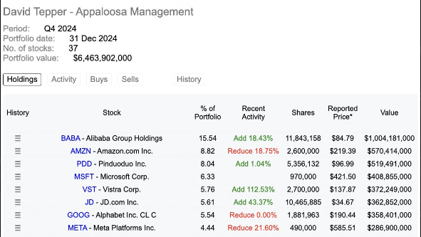 最新13F披露文件显示,他旗下对冲基金2024年Q4确实是全面增持了阿里、京东、拼多多等中概股和中国股票基金:
