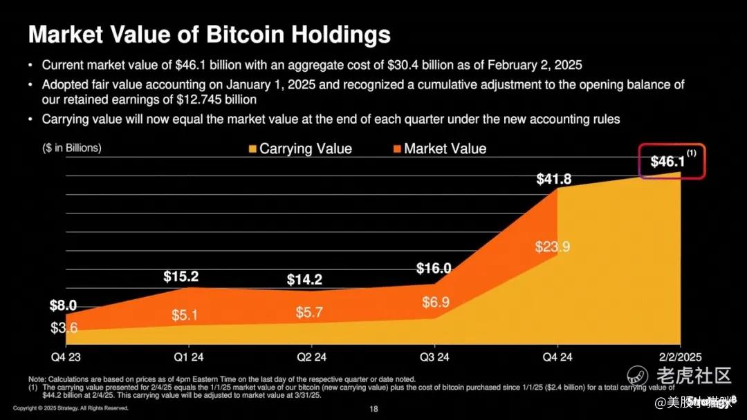 • 按 96,500 美元/BTC 计算,当前持仓总价值已超过 450 亿美元