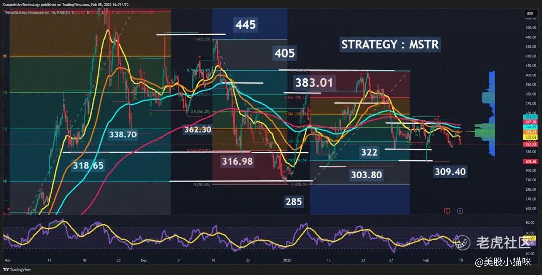 然而,股价在 310 美元附近(78.6% 斐波那契回撤位)出现明显反弹,并在 2025 年 2 月 3 日低点(309.40 美元)企稳,表明该区域可能成为强支撑位。