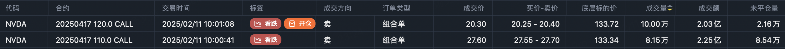 roll买入 $NVDA 20250417 120.0 CALL$ 成交量10万手,成交额2.03亿。