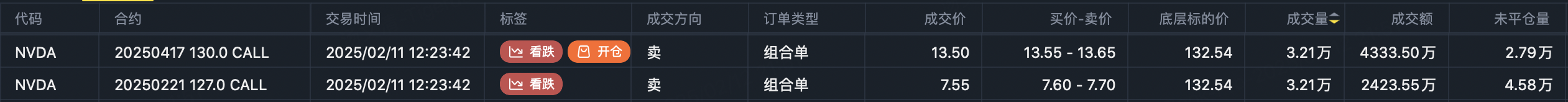 其他long call策略移仓到130 $NVDA 20250417 130.0 CALL$