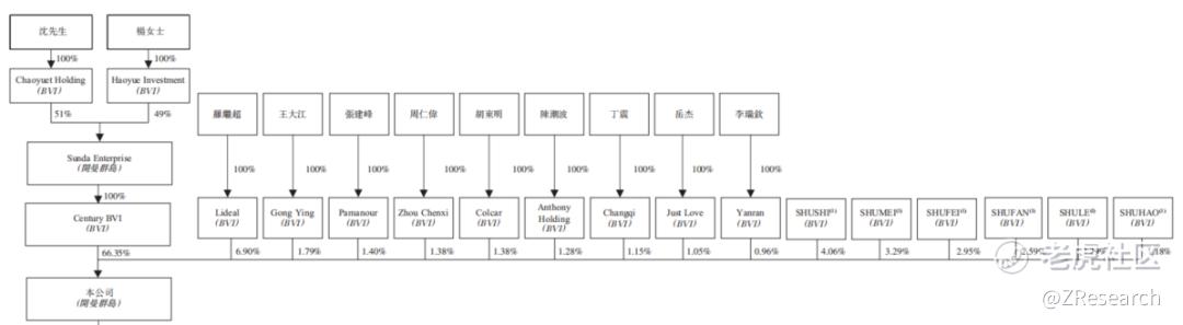 据招股说明书,截至IPO前,创始人沈延昌先生、杨艳娟女士夫妇,通过Century BVI,持股66.35%;