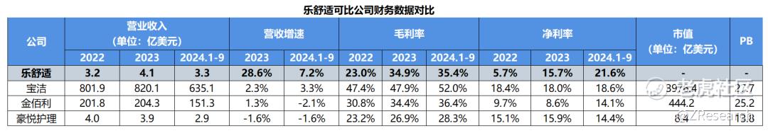 同时,宝洁定位高端品牌,较高的产品定价使其能够获得更高的毛利率,2024财季前三季度毛利率已超过50%,达到52.0%。而乐舒适采取低价策略,毛利率自然也会受到一定影响,但本土化生产带来的低成本效益和原材料价格的下降对乐舒适的毛利率起到了提升作用,尽管不如宝洁,但已超过了国内部分知名卫生用品企业,跟全球最大卫生纸生产商金佰利处于同一水平。