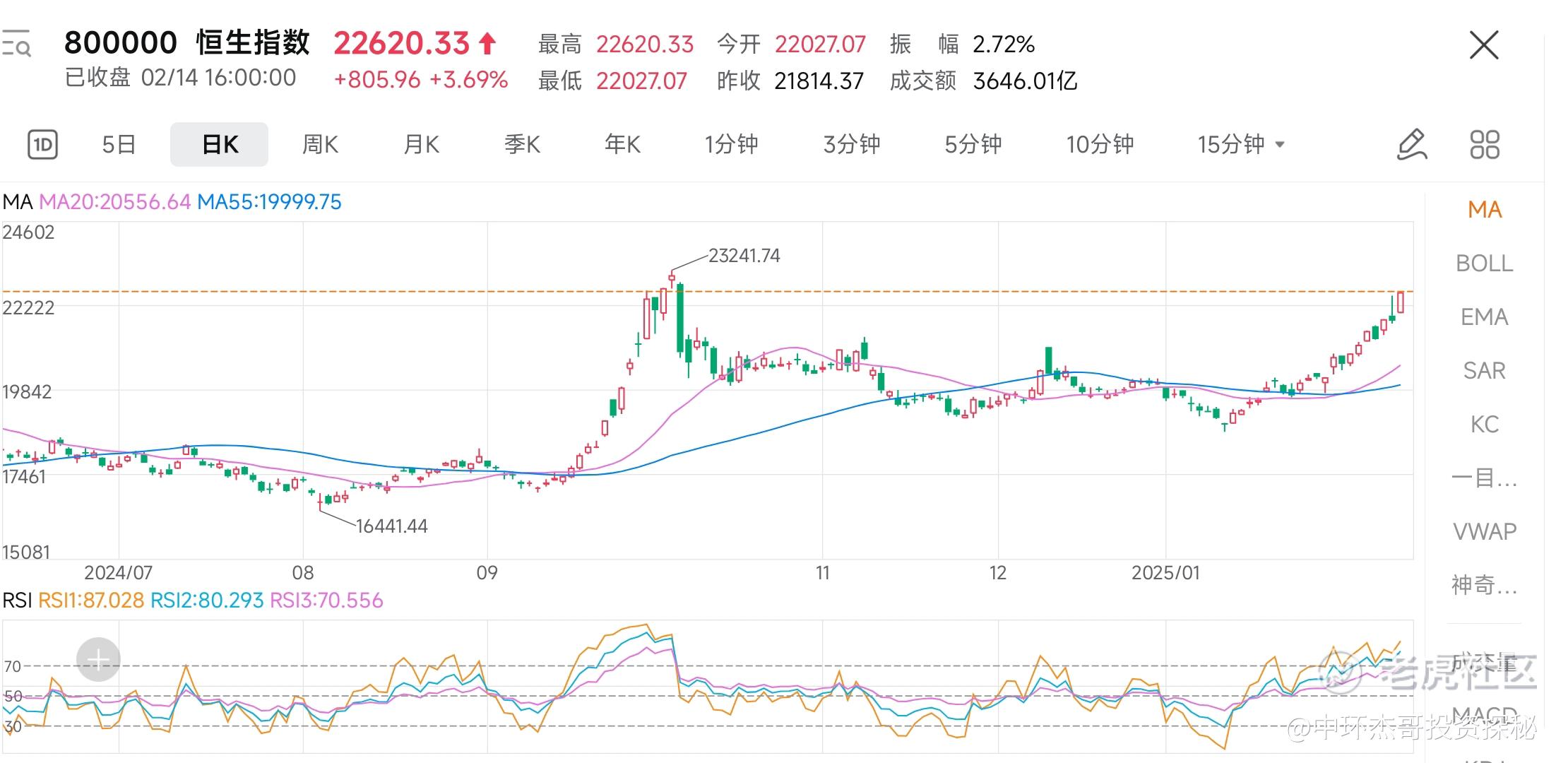 恒正指数的第一个上影线,绝对不是行情的终结,而喜欢快进快出的,肯定是受不了这个振荡的。这波行情和国庆节行情有本质的区别,那波行情,很显然就是政策市,政策市之后往往需要检验业绩和预期,这才是真正的推动力。而目前,国际局势预期是好的,市场估值的预期一直就是引爆点,deepseek就是来掀桌子的,国内的预期也是一直向上走的,这就解释了港股而不是A股爆发的底层的逻辑。
