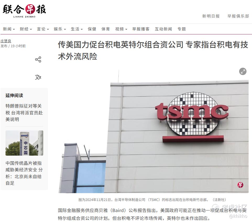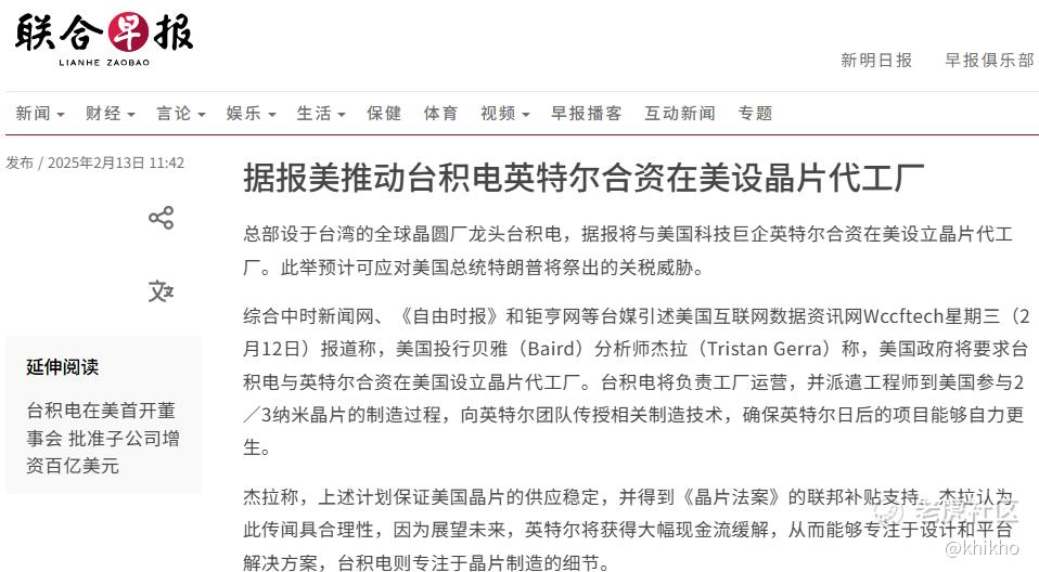 - 台积电赴美召开董事会的催化:台积电于2月12日至14日首次在美国召开董事会,被市场视为合资传闻的一个佐证,引发市场对英特尔与台积电合作的更多猜测和期待,进一步推高了英特尔股价。