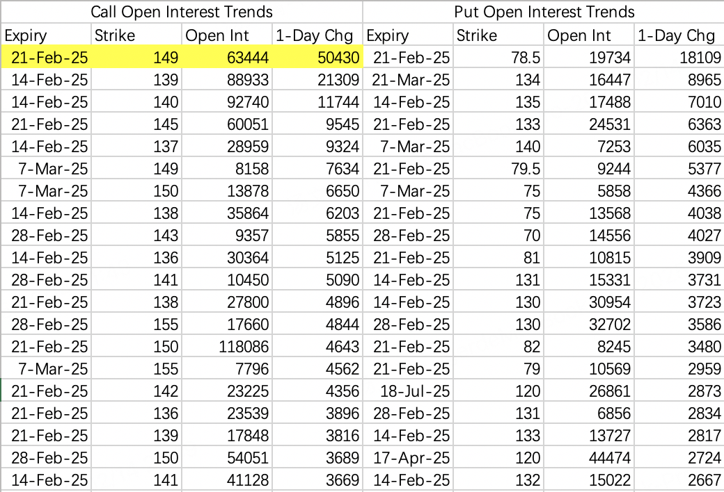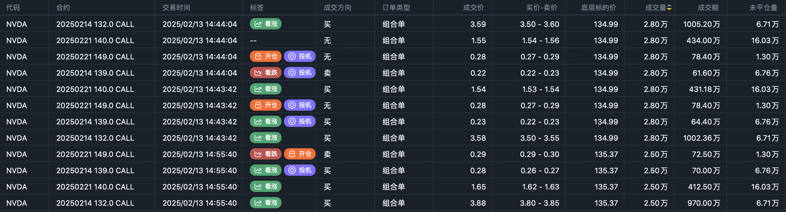 机构周常roll仓看涨价差,sell $NVDA 20250221 140.0 CALL$ ,buy$NVDA 20250221 149.0 CALL$ 。助力下周股价上140。