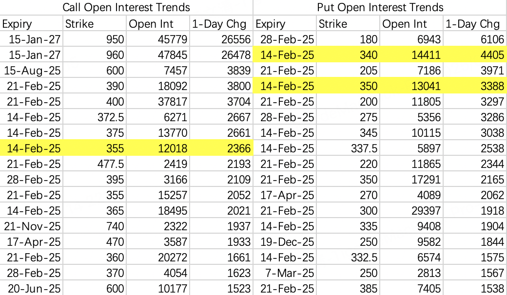 比如本周到期350call,周四成交量13.48万,但未平仓没有新增,反而减少7000手。
