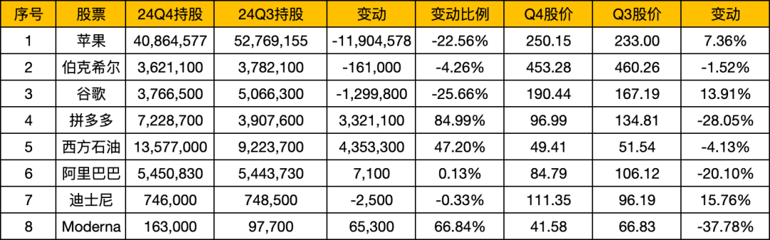 段永平2024Q4持仓和变动明细-继续大幅减持苹果