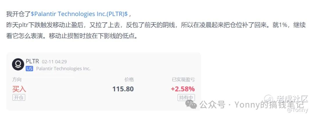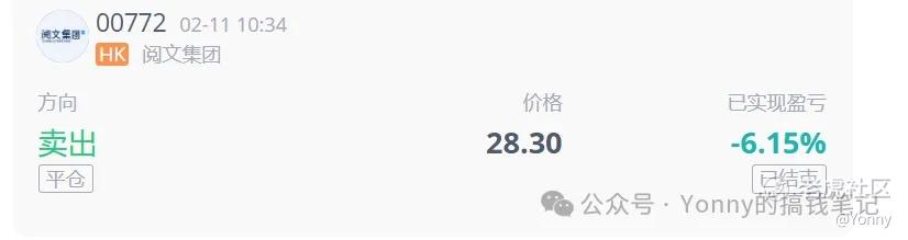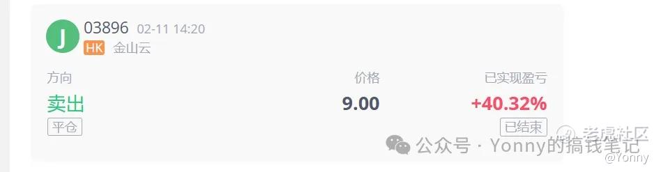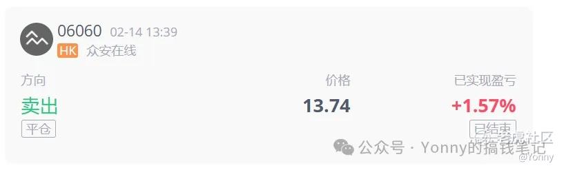 这也是一笔卖飞的票。2月11日的下跌触发了移动止盈,尾盘把最后一点筹码也卖了,没想到周五更加暴力的上涨。虽然这一波上来赚得也差不多了,但我这种格局,注定赚不了什么大钱。。。害,能赚一点算一点吧。