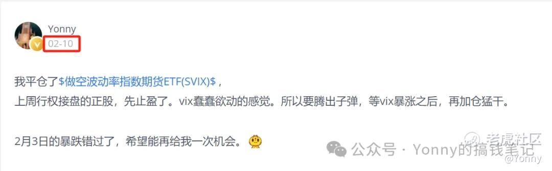 1)前一周就在SVIX上赚了一波,在2月10日平仓顺利止盈SVIX,等待机会。