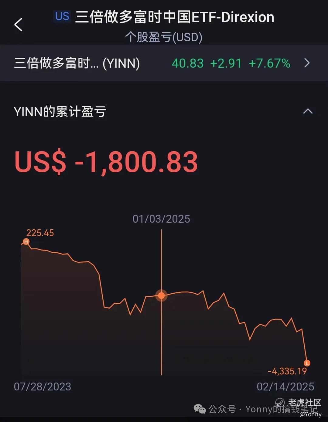 应该是从今年年初开始做YINN 和YANG的双卖策略,截止目前YINN 的sell call对冲单亏损 4335-1800=2535刀。