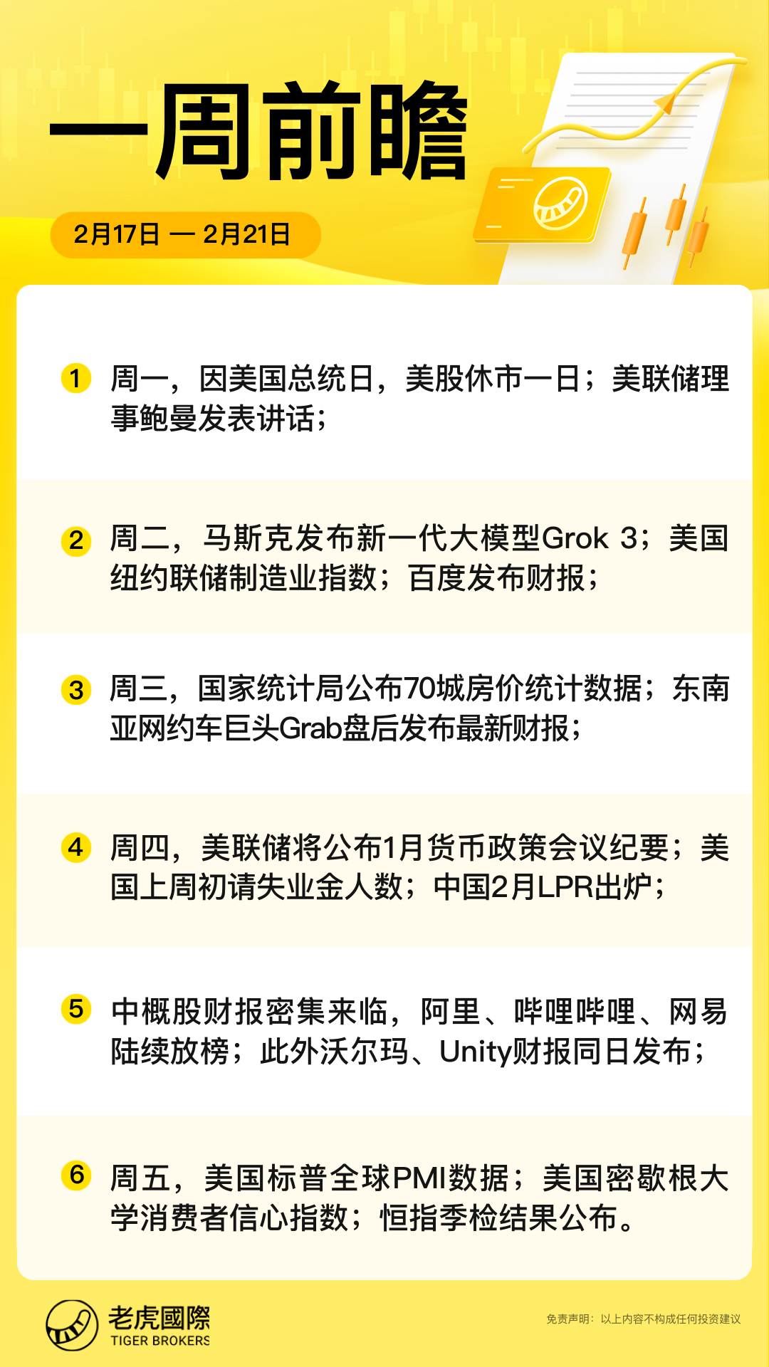 休市提醒:因美国总统日,周一(2.17)美股休市一日。