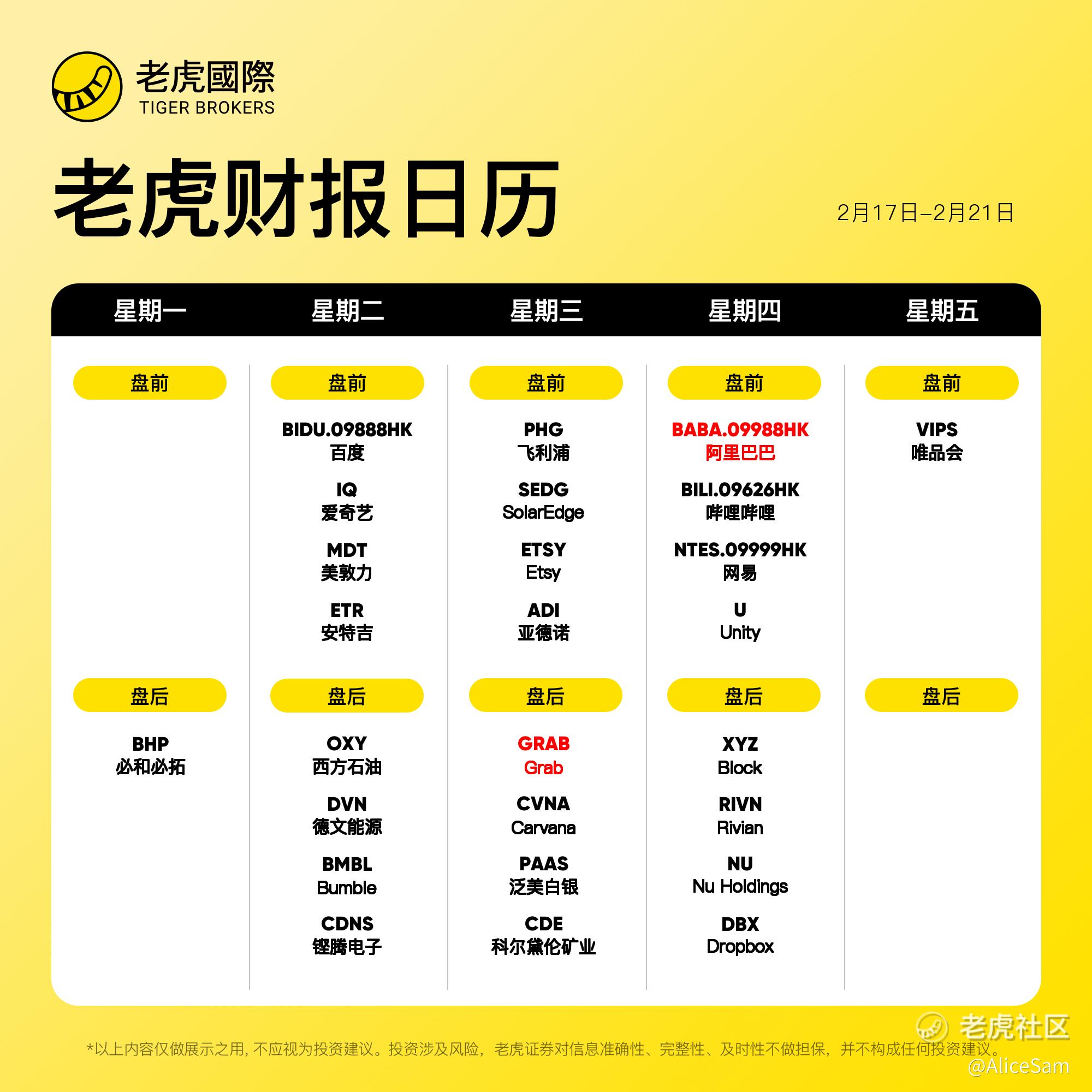公司业绩:中概股财报密集来临,阿里、百度、哔哩哔哩、网易将陆续放榜;此外沃尔玛、Unity、Grab的财报也值得关注;