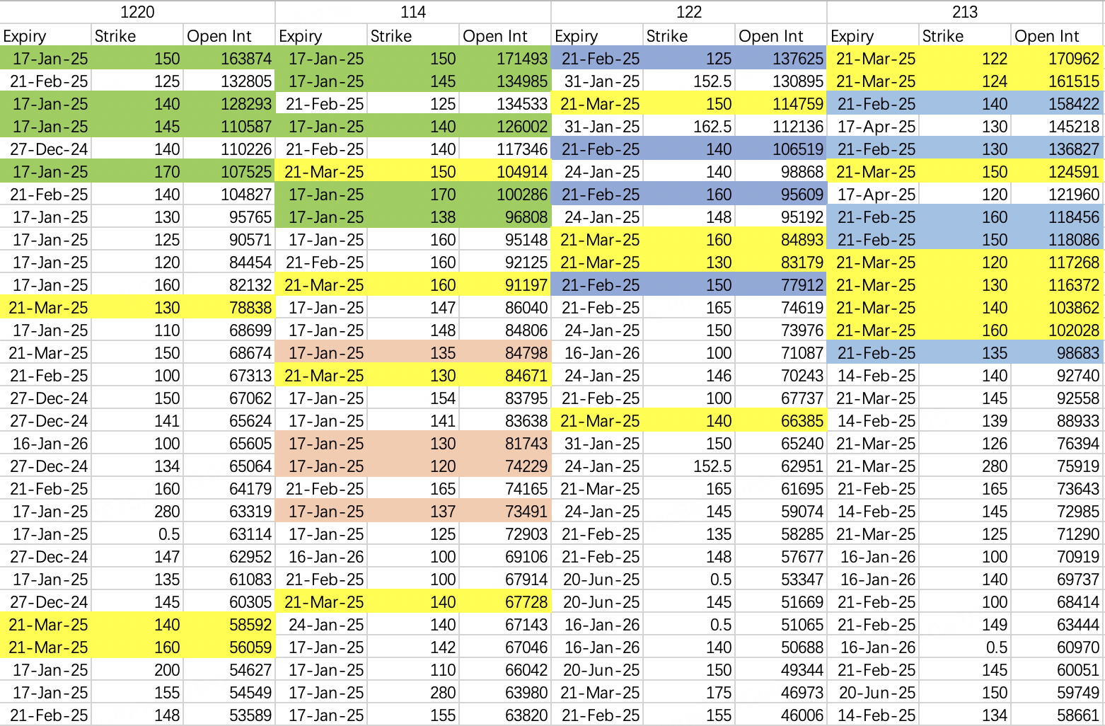 顺便把 $英伟达(NVDA)$ 的数据也列了一下。发现本周大概率会杀140的call,所以看涨需要见好就收。