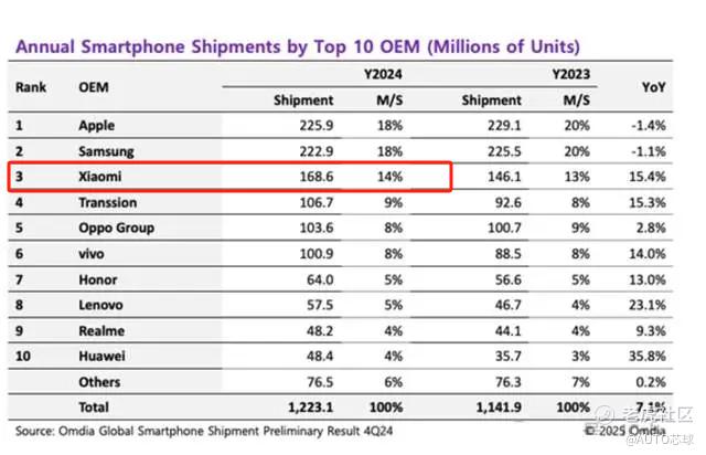 从被人嘲笑"山寨机",到现在跻身全球前三,