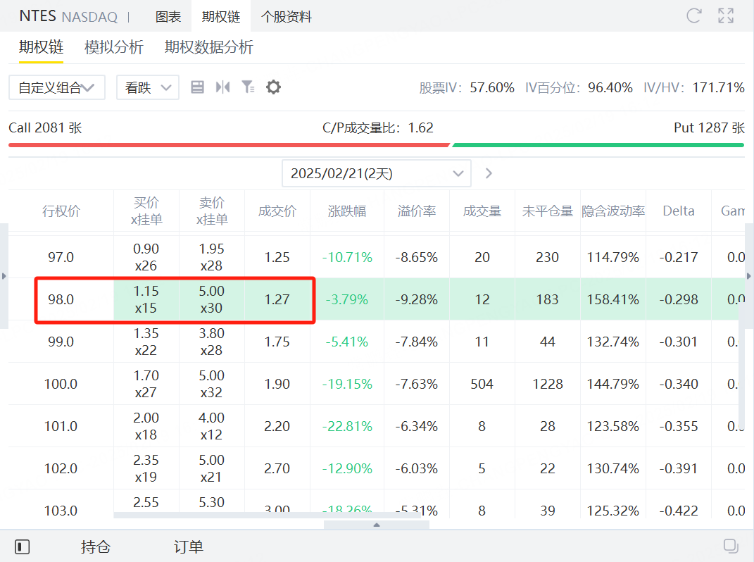 股票网易目前交易价格为104.3美元。投资者可以通过以下操作实施空头宽跨式策略: