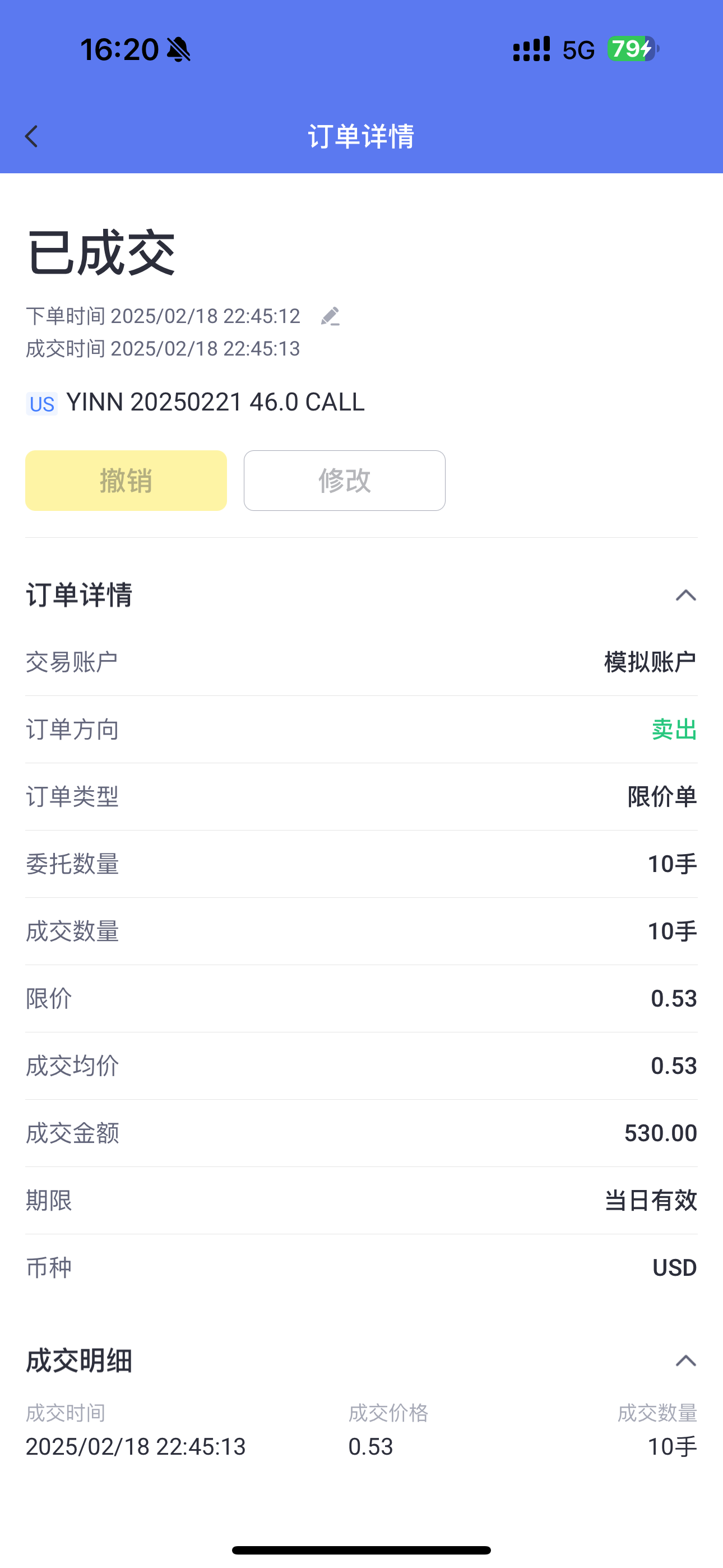 权利金:每张合约 52美元,共卖出 10张,总权利金收入 520美元。