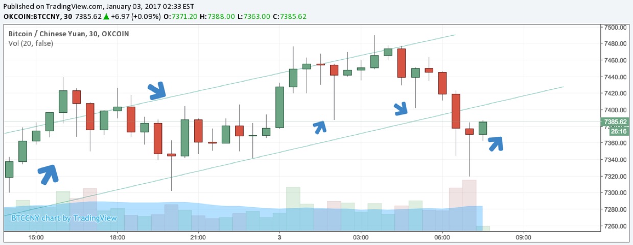 进入图中上行通道可以考虑追多 逢低补仓 2017年 比特币行情 up up up!