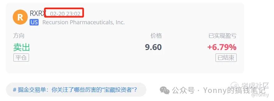 RXRX:其中的RXRX在20号晚上的下杀就被震出去了,正股清仓止盈。期权仓位在周五晚上也一起清理了。