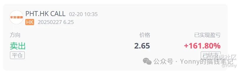 2月20当天在左侧清仓平安好医生了,4h和日线都在超买区间持续了好久,感觉迟早会迎来一波调整。主要也是贯彻这个原则:期权从左侧减仓退出,sell in strength,正股就走右侧的移动止盈止损的逻辑。