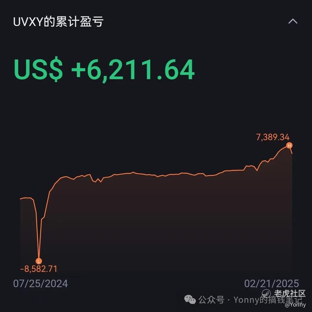 我整体的账户收益也跟着大盘,有一些回落。周五收盘前我减仓了大部分题材股、以及与beta强相关的股票,腾出仓位搞蜜雪冰城的打新,以及伺机继续加仓UVXY——虽然很多人认为2025年是做多波动率的一年,但每一次暴风骤雨都终归平静,我相信这仍然是确定性最强的标的之一(前提是仓位和节奏把控得当)