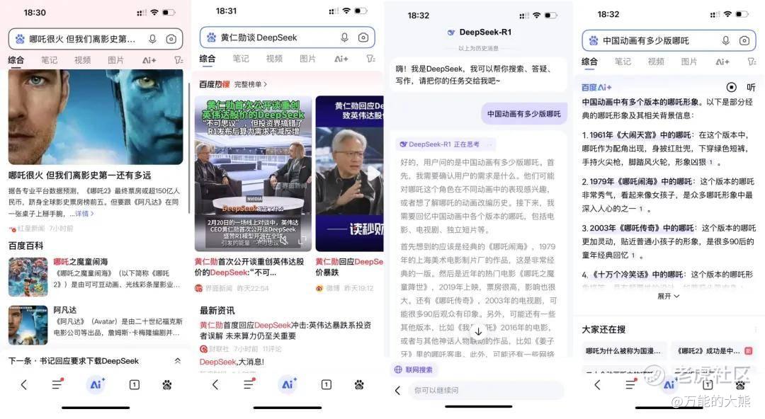 不过电商竞争的基调还是基于竞争对手的便宜对老牌领军者的冲击。百度的求变则更多还是AI带来的价值重塑,尤其是这个改变是在百度大模型宣布免费、开源、接入deepseek之后,这种意味就更加明显。和很多人认为的掉队不同,凭借这个多年的认知和丰富的内容产品矩阵,结合了deepseek之后,百度在AI领域的优势实际上是我变秃了,也变强了。