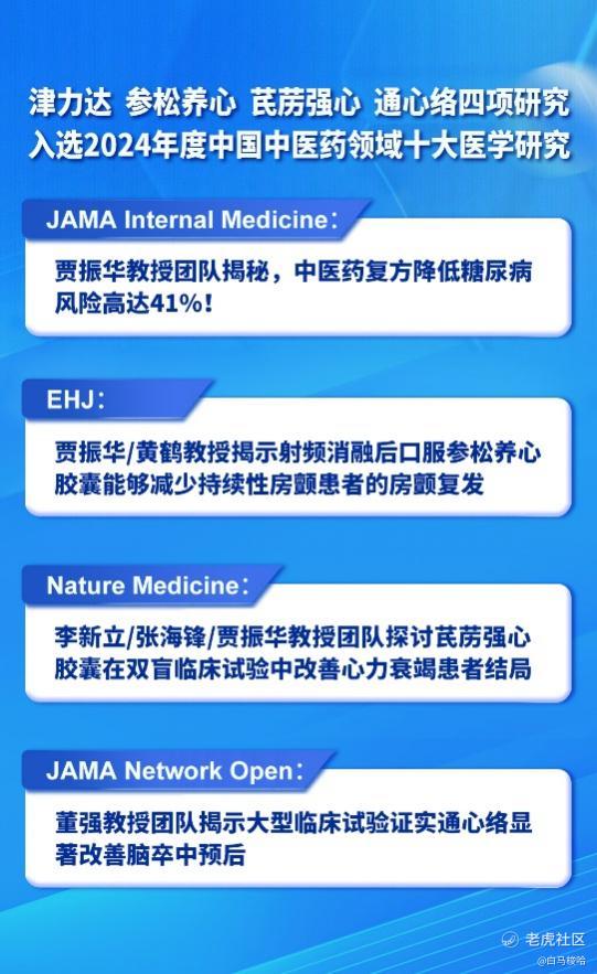津力达、通心络、参松养心、芪苈强心等循证研究四项成果荣膺“2024年度中国中医药领域十大医学研究”。这四大创新中药也被誉为心血管事件链的“四大名捕”。
