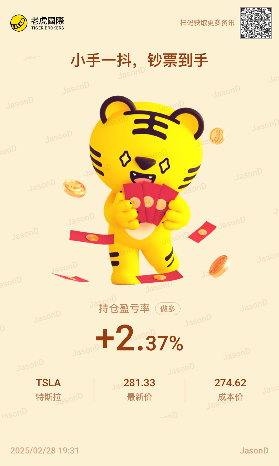 280的特斯拉说来就来了 到点上车 准备新一轮波段操作 我的波斯拉回来啦!